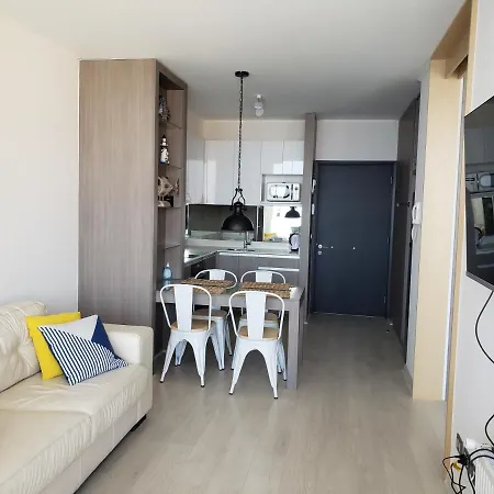 Apartamento Departamento Full Vista Al Mar Renacaconcon está situado a 550 metros do Campo Dunar Punta Concon e recebe os hóspedes com jacuzzi, banheira quente e piscina interior. A Praia de Cochoa fica a 1 km deste apartamento à beira-mar, enquanto a estação rodoviária Avenida Concon Renaca - Los Ginkos está a uma pequena distância da propriedade.