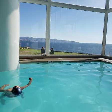비냐델마르에 위치한 Departamento Full Vista Al Mar Renacaconcon 아파트는 일광판, 워터파크, 자쿠지를 제공합니다. 이거릴라 부두는 아파트에서 2.3km 거리에 있으며 콩콘 사구은 약 0.7km 떨어져 있습니다.